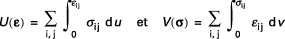 En élasticité, il est usuel d’introduire les potentiels des déformations U(ε) et des contraintes V(σ) :