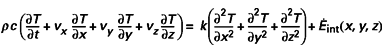 n’existe que dans les problèmes instationnaires. Les autres expriment le transport de la chaleur par le mouvement du solide (terme d’advection). Au second membre, la parenthèse est le terme de conduction (ou diffusion) de la chaleur, suivant la loi de Fourier, et le second décrit la chaleur créée dans l’emprise :
