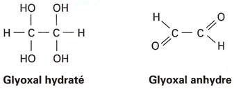 Le glyoxal s’hydrate rapidement en présence d’eau pour donner l’hydrate de glyoxal et les formes oligomères de celui-ci.