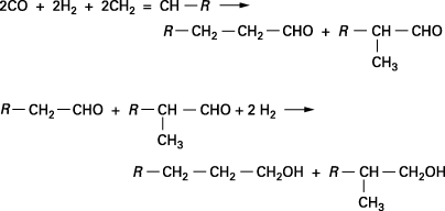 Elle utilise aussi CO et H2 qui, par réaction catalytique avec les oléfines, produisent un mélange d’alcools isomères :