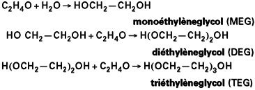 Les glycols sont ensuite obtenus à partir de l’oxyde d’éthylène selon les réactions suivantes :