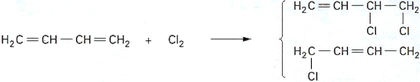 La première étape, chloration du butadiène, est effectuée en phase gazeuse à des températures voisines de 250 oC et en présence d’un excès de butadiène.