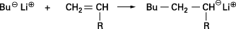 Les radicaux se couplent immédiatement et conduisent à un carbanion double, susceptible d’amorcer une chaîne polymère de chaque coté :