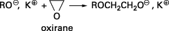 Dans le cas des polymérisations par ouverture de cycle, les mécanismes d’amorçage sont analogues, bien que les amorceurs puissent être un peu différents. La polymérisation des oxiranes, par exemple, est amorcée par un alcoolate de potassium ROK, dissocié en oxanion RO≅ et K⊕.