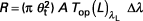 En même temps que le signal utile, le télescope reçoit un flux radiométrique R (en watts) dont la valeur dépend de la luminance spectrale diffuse L (W · m–2 · nm–1 · sr–1) de la scène observée. Comme pour le signal utile (§ 7), la puissance reçue est fonction du champ de vue du télescope (2 t), de la surface A du télescope, du facteur de transmission Top de l'optique et de la largeur spectrale Δλ du filtre interférentiel :