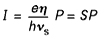 Le coefficient de conversion S est usuellement de l’ordre de 0,7 ou 0,8 A/W. Le terme η, inférieur à l’unité, traduit le fait que dans un photorécepteur, tous les photons incidents ne donnent pas naissance à un électron : η = 0,8 signifie, par exemple, qu’en moyenne 80 % des photons incidents donnent naissance à des électrons dont le flux constituera le photocourant.