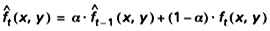 . Un bon moyen pour réduire l’amplitude du bruit aléatoire d’une image est donc de moyenner les pixels homologues sur plusieurs trames consécutives. Si la scène est statique et la caméra immobile par rapport à celle‐ci, cette réduction du bruit se fera sans altération du signal et entraînera une amélioration du rapport signal sur bruit, donc de la qualité intrinsèque de l’image. Le système visuel humain est déjà un intégrateur temporel avec une constante de temps équivalente de 0,2 à 0,3 s. L’horizon temporel d’accumulation des images (N multiplié par la durée d’une image, soit environ 40 ms) devra être supérieur à cette dernière valeur pour que le gain soit perceptible. Plutôt que de moyenner directement N trames, ce qui correspond à une réponse temporelle de type créneau, il peut être avantageux, notamment en termes de complexité matérielle, de mettre en œuvre une intégration récursive qui s’écrit sous la forme :