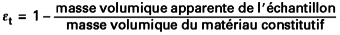 la porosité totale qui tient compte des cavités occluses au sein du solide (pores fermés) :