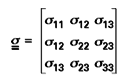 . Ce tenseur symétrique représente l’état tridimensionnel des contraintes en un point. La forme générale du tenseur des contraintes est celle du tableau à neuf composantes suivant :