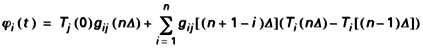 On suppose qu’une paroi plane est initialement en régime permanent entre deux ambiances à température égale à zéro. On élève instantanément de 1 oC la température de l’une des deux ambiances et l’on observe le flux traversant l’une des faces. Les quatre courbes de réponse sont les fonctions d’influence de la paroi ; notons‐les gij (t ). Le lecteur attentif aura tout de suite remarqué que ce sont les réponses indicielles flux‐température d’une paroi limitée par des conditions de 3e espèce qui peuvent être par exemple explicitées avec le modèle modal. On montre qu’un des deux flux ϕ j à un instant quelconque n Δ obtenu en réponse à une évolution échantillonnée d’une des deux températures Tj s’exprime de la façon suivante :