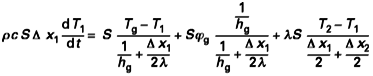 On aura noté que l’expression des flux entrants est basée sur l’évaluation des résistances thermiques entre nœuds ou entre nœud et point où s’applique une sollicitation. On remarquera notamment que ϕ g est affecté d’un coefficient inférieur à 1 traduisant le fait qu’une partie du flux absorbé ressort de la paroi sans atteindre le nœud 1.