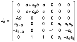 où j désigne le repère dans lequel sont exprimées les vitesses. Dans notre cas, la matrice J, appelée jacobienne, s’écrit de la façon la plus simple dans le repère