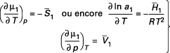 Le potentiel chimique dépend non seulement de la composition de la solution, mais aussi de la température et de la pression :