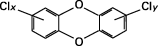 La spectrométrie de masse est rapidement apparue comme la méthode de choix pour la détection des dérivés de la dioxine. Et, à ce titre, l'exemple de la 2,3,7,8-tétrachlorodibenzo-p-dioxine illustre bien la place analytique que peut prendre le couplage CG/SM/SM parmi les techniques traditionnelles d'analyse utilisant la spectrométrie de masse. Les dérivés tétrachlorés de la dioxine sont formés principalement comme produits secondaires lors de la production industrielle de dérivés chlorés du phénol et au cours de la combustion de déchets industriels ou ménagers. Ils sont également détectés dans les gaz d'échappement automobile et dans les eaux de rejet des usines de fabrication de papier et de pâte à papier. De fortes présomptions pèsent actuellement sur le rôle de l'alimentation (particulièrement la consommation de viandes grasses) pour les risques d'exposition à ce type de composés. Leur structure générale est la suivante :