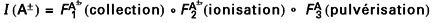 L’expression phénoménologique de l’intensité ionique (nombre de particules par unité de temps) recueillie pour une espèce ionique A± donnée s’écrit :