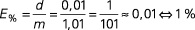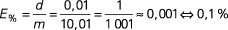L'étendue des mesures correspond à la différence entre deux indications consécutives de l'indication numérique de la balance (échelon réel d). On peut admettre que l'erreur relative E % liée à cette pesée sur cette balance, est égale au rapport de l'échelon réel d de la balance à la charge pesée m :