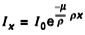 dI = Iµ dxCela conduit à la loi de Beer donnant l’intensité transmise par une épaisseur x de la matière :