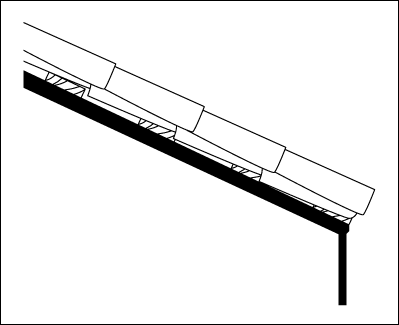 À l’égout, les tuiles de couvert du dernier rang peuvent être alignées ou dépasser des tuiles de couvrant. Elles ne reposent pas comme les rangs précédents sur une tuile, il est donc nécessaire, pour les rehausser, de mettre en place un dispositif qui évite le basculement des tuiles. Plusieurs techniques sont disponibles :- Lorsque l’égout est scellé sur le mur, une épaisseur de mortier appropriée suffit pour obtenir la bonne hauteur.