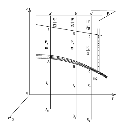 Le théorème de Bernoulli définit la perte de charge dans le cas d’un liquide parfait, c’est-à-dire incompressible et sans viscosité, s’écoulant par gravitation. Il exprime la loi de la conservation de l’énergie appliquée aux fluides. En pratique on utilise des formules dérivées qui tiennent compte de la nature et de la qualité des conduites et dont les résultats sont présentés sous forme d’abaques ou de tables précalculées.1 - Cas des liquides parfaits