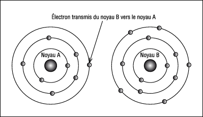 C’est une particule élémentaire électriquement neutre. La charge du noyau dépend de la constitution du noyau et des électrons gravitant autour. Ceux-ci sont répartis en plusieurs couches en fonction de leur niveau énergétique. Les électrons situés sur la dernière couche sont plus influençables et peuvent partir du noyau. De même, sur cette couche peuvent arriver d’autres électrons venant d’autres noyaux. Ce phénomène de transmission d’électron est à l’origine du transport de courant. La figure 1 montre la perte d’un électron d’un noyau à l’autre.