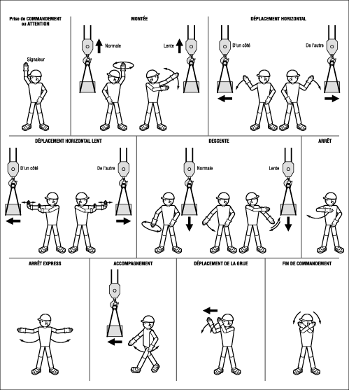 - gestes de commandement émanant du chef de manœuvre ( cf. Fig. 3 et 4 ) ;