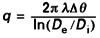 Q = (λ /e ) Δ θEn considérant une paroi cylindrique de longueur unitaire, de diamètre interne D i et de diamètre externe D e , l’intégration donne :