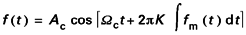 Considérons la phase Φ c comme nulle, pour simplifier les calculs. La fréquence de la porteuse doit varier linéairement en fonction du signal modulant f m (t ).