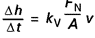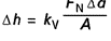 La perte d’épaisseur d’une couche superficielle ou usure linéique Δh durant le temps Δt (Δh /Δt ) est constante dans le régime d’usure stationnaire. On peut l’exprimer autrement : la perte d’épaisseur d’une couche superficielle Δh est le quotient du volume d’usure ΔV par la surface de contact A. On obtient alors, avec la formule [1] :