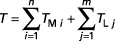 En notant TM i et TL j les forces de frottement, dans les zones différentes travaillant respectivement en film mince continu et film limite, l'expression de la force de frottement sur l'ensemble du contact s'écrit :