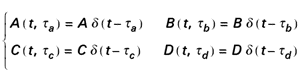 Considérons le cas où toutes les matrices se réduisent à des impulsions de Dirac d’amplitudes A, B, C et D :