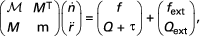 où nous reconnaissons, sur la ligne supérieure, la dynamique externe avec r maintenant gouverné par la ligne inférieure de (17) (c’est-à-dire, la dynamique interne de forme), de laquelle nous pouvons extraire l’expression des couples moteurs :