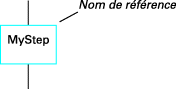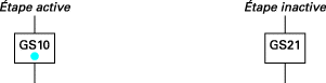 Une étape est représentée par un carré simple. Chaque étape est référencée par un nom, qui est inscrit dans le symbole carré de l'étape. Ces informations constituent le niveau 1 de l'étape :
