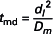 Pour le mélange de fluides miscibles en régime laminaire, c’est la diffusion moléculaire qui contrôle l’opération – un mécanisme qui est très lent –, et non le mécanisme plus rapide de convection, prépondérant dans les écoulements turbulents (voir aussi ). Le transport diffusionnel obéit à une loi de Fick à partir de laquelle le temps de mélange s’exprime en fonction d’une distance caractéristique, dl , et du coefficient de diffusion, Dm :