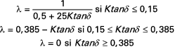 où λ, coefficient d’accrochage, prend les valeurs suivantes :