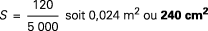 Pour une surface projetée de la couvertute de 120 m2, la section S, dans le cas d’un rapport S = 1/5 000, est de :