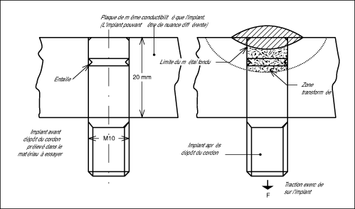 La méthode consiste à appliquer à un implant, immédiatement après dépôt d’un cordon de soudure, une contrainte maintenue fixe pendant toute la durée de l’essai. On détermine ainsi si une fissure se produit sous l’effet de cette contrainte.