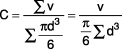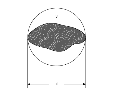 Le coefficient volumétrique C est le rapport entre le volume v d’un grain donné et celui de la sphère circonscrite de diamètre d ( cf . Fig. 1 ).