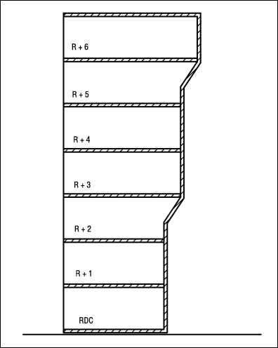 L’entreprise doit réaliser un immeuble de 6 étages sur RC, avec façades porteuses en béton banché. Cet ouvrage présente deux encorbellements successifs par rapport à la façade des étages inférieurs, l’un au 2 e , l’autre au 5 e étage, la longueur de façade intéressée étant de 10 m.Difficultés