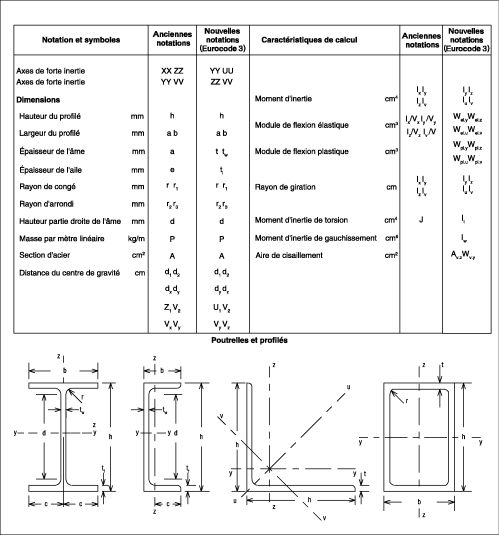 Ainsi, la notation des caractéristiques dimensionnelles d’un profil a principalement été modifiée par le changement de l’axe principal d’inertie qui s’appelle dorénavant Y (à la place de X) et, par conséquent, par la substitution de Y par Z.