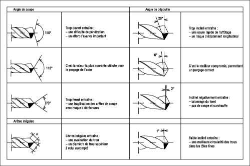 La figure 2 nous donne un comparatif sur les incidences des angles de la partie active pour le perçage de l’acier.