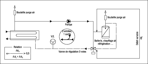 La maîtrise des performances d’un réseau de distribution d’eau glacée impose un minimum d’interférences entre les réseaux primaires et secondaires, il en va du bon fonctionnement des pompes. Dans cet objectif, la solution des boucles de décharge ou de l’échangeur est souvent retenue. Du nombre de vannes de régulation, à deux ou à trois voies, dépend également la bonne tenue des caractéristiques techniques du réseau, à savoir la valeur et la variabilité du débit.