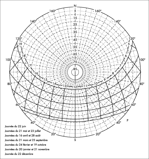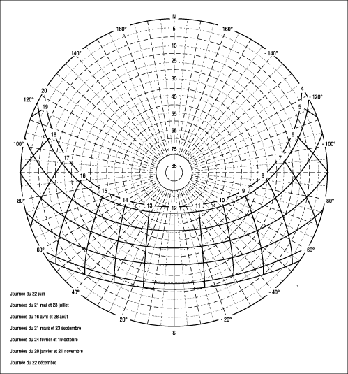 Les figures suivantes représentent les parcours solaires pour les latitudes :