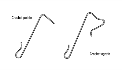 - le crochet agrafe, qui enserre le liteau et l’ardoise ;