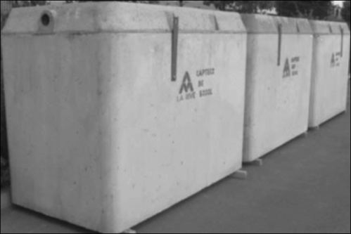 Le béton vibré offre l’avantage d’équilibrer l’acidité de l’eau de pluie et de la reminéraliser. Naturellement légèrement acide, le PH de l’eau de pluie sera facilement rééquilibré car le ciment alcalin neutralise l’acidité (pH 4 à 6) supprimant ainsi tout risque de dégradation ultérieure des canalisations de distribution métalliques. Le seul inconvénient de ces cuves, c’est leur poids qui nécessite un engin de levage pour les déplacements. Par contre leur forme généralement très compacte et rationnelle autorise une optimisation du transport et une facilité d’intégration sur le lieu d’implantation. Par exemple, les cuves Capteco® « monobloc » réalisées sans joint ( cf. Fig. 1 ), résistent à une hauteur de remblai de 0,80 m couvrant la majorité des hauteurs de fil d’eau. Ce remblai participe à l’isolation thermique de l’eau stockée (gel, chaleur) et à la protection de la lumière en limitant les développements bactériens. Le volume d’eau stockée occupe le fond de cuve.Cet article fait partie de l’offre