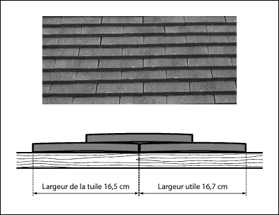 pureau = faux-pureau = (longueur de la tuile – valeur du recouvrement) / 2.