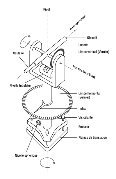 Le tachéomètre ( cf . Fig. 1 ) est un instrument permettant de mesurer les angles horizontaux, verticaux et les distances ; il est équipé d’un procédé de mesure par ondes lumineuses modulées pour les appareils récents.Cet article fait partie de l’offre