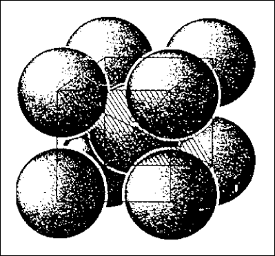 Les atomes sont répartis régulièrement suivant un réseau ordonné à trois dimensions. Il est possible de former un tel cristal à partir d’une juxtaposition d’une même structure élémentaire appelée « maille du réseau cristallin ». Par exemple, la maille élémentaire caractérisant l’arrangement des atomes dans le fer est un cube portant un atome à chaque sommet et un atome au centre : la structure est dite « cubique centrée » ( cf. Fig. 1 ).