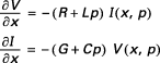 et en écrivant la loi d'Ohm, on obtient les équations, dites des télégraphistes :