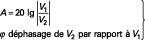 Ces grandeurs sont reliées à la fonction de transfert du filtre H (jω ) = V 2/V1 avec ω = 2πf, pulsation de la fréquence f du signal d'entrée, par :