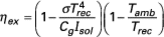 La concentration du rayonnement solaire permet d'élever la température de l'absorbeur de plusieurs centaines de degrés par rapport à la température d'équilibre obtenue sans concentration. En supposant que le récepteur solaire se comporte idéalement comme un corps noir et qu'il n'échange que par rayonnement avec l'extérieur, le rendement du récepteur solaire porté à la température T rec est exprimée en fonction de la concentration géométrique C g du système et de l'ensoleillement instantané I sol par :